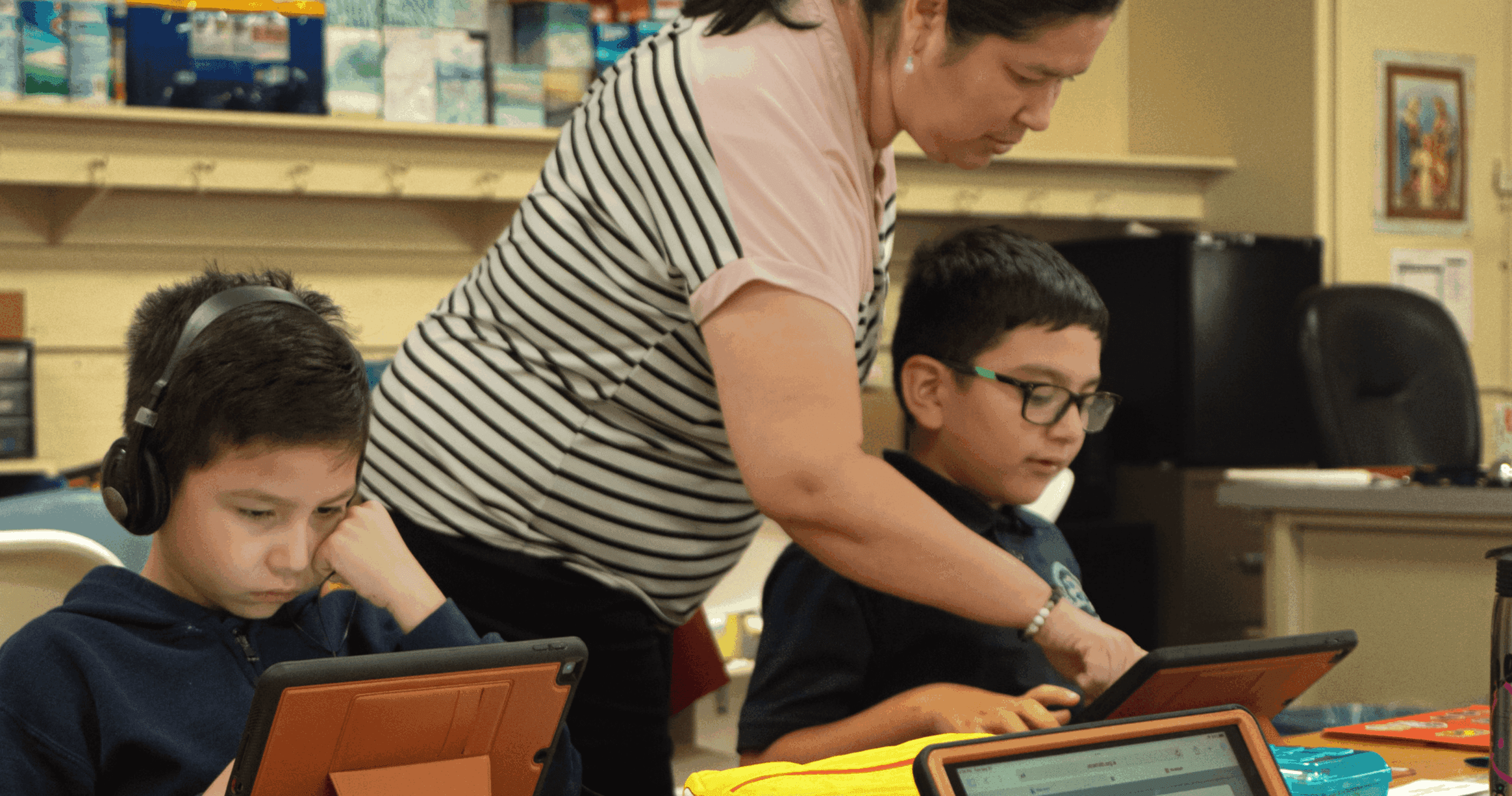 Teachers at OLPH Glendale are trained in blended learning practices that support both academic challenge and flexibility. Students move through lessons working in small groups, sometimes one-on-one, often shifting between the two. This structure allows for movement, variety, and focus. Teachers make adjustments in real time, responding to what students need in the moment. Everyone stays engaged — whether working independently or alongside a teacher who knows exactly where to lean in.